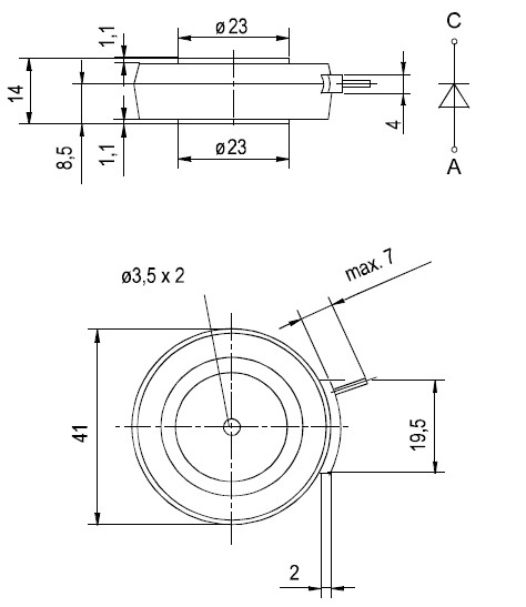 The D348S20T is a 348A Iout, 2.0kV Vrrm General Purpose Silicon Rectifier.