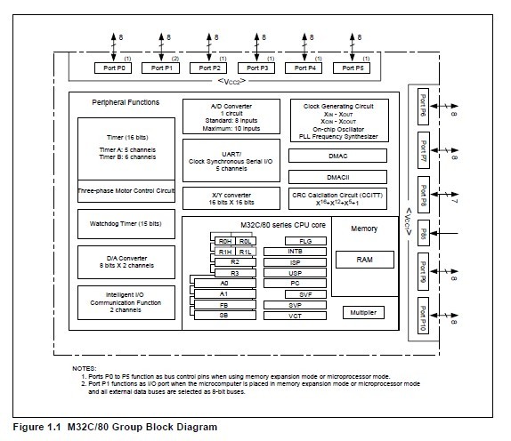 M30800SAGP-BL-U5 features: (1)Vendor: Renesas Technology America; (2)Category: Integrated Circuits (ICs); (3)RAM Size: 8K x 8; (4)Number of I /O: 45; (5)Package / Case: 100-LQFP ; (6)Speed: 20MHz; (7)Controller Series: M16C/80; (8)Oscillator Type: Internal; (9)Packaging: Tray; (10)Program Memory Type: ROMless; (11)Core Processor: M16C/80; (12)Data Converters: A/D 10x10b; D/A 2x8b; (13)Core Size: 16-Bit; (14)Peripherals: DMA, WDT; (15)Lead Free Status: Lead Free; (16)RoHS Status: RoHS Compliant.