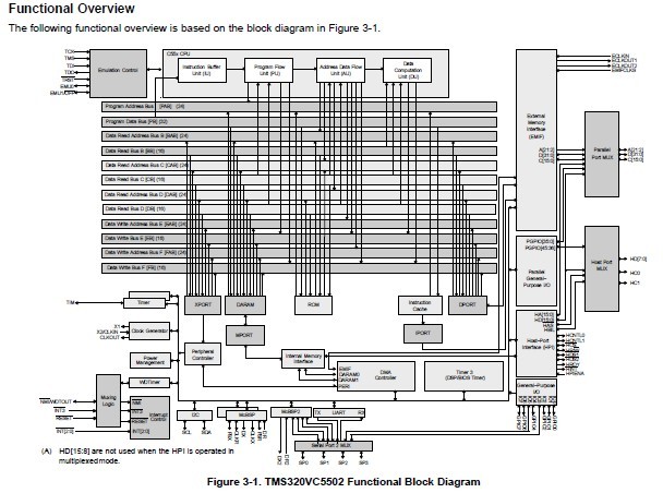 The TMS320VC5502PGF fixed-point digital signal processor (DSP) is based on the TMS320C55x DSP generation CPU processor core. The TMS320VC5502PGF DSP architecture achieves high performance and low power through increased parallelism and total focus on reduction in power dissipation. The CPU supports an internal bus structure that is composed of one program bus, three data read buses, two data write buses, and additional buses dedicated to peripheral and DMA activity. The TMS320VC5502PGF provides the ability to perform up to three data reads and two data writes in a single cycle. In parallel, the DMA controller can perform data transfers independent of the CPU activity.